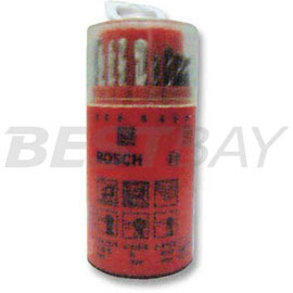 7支高速钢钻头、4支石工钻头、5支木工钻头、3支双头起子钻头挂式金属圆盒装包装